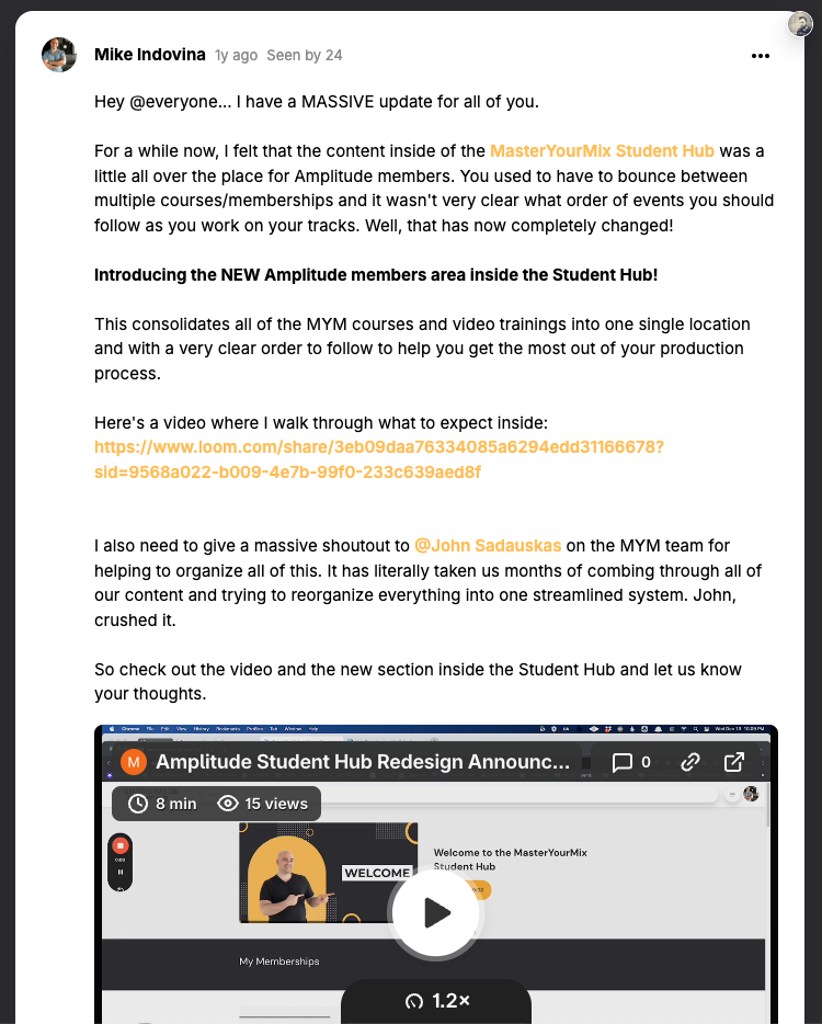 You watch MasterYourMix founder Mike Indovina walk members through the new design in this video and see the announcement of the new learning portal in the member community here.
